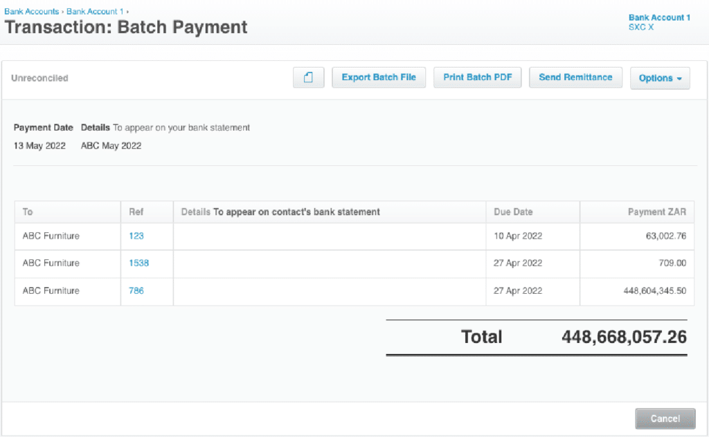 Within Xero, you can create batch payments by selecting multiple supplier invoices that are awaiting payment and selecting the Make Payment button. Xero creates a batch that can be sent to your Xero bank as paid and also allows you to send a remittance advice to your suppliers so they know for which invoices you have made payment. This makes supplier payments easier to reconcile and your suppliers will be able to allocate your payment to the appropriate bills. This is particularly useful if you receive settlement discounts as your records can often be challenging to align with that of your suppliers.